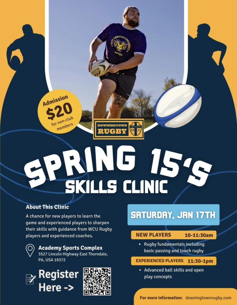 On the heels of very successful spring and fall season Downingtown Rugby is excited to begin our Spring 15’s season with a skills clinic at Academy Sports Complex. Open to boys and girls, 5th to 12th grade, no experience needed. Come learn the game from the highly successful players at West Chester University from 10-11:30am or for experienced players hone those skills from 11:30-1. Participants can attend both sessions.