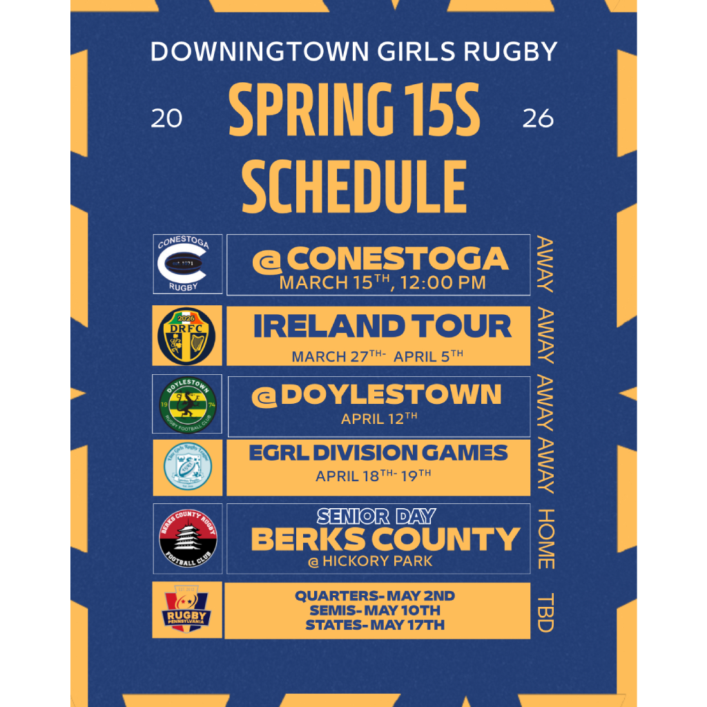 Our HS Girls 2026 Spring season is highlighted by an international Ireland tour (March 27–April 5), featuring matches against Ennis RFC and Portadown RFC.